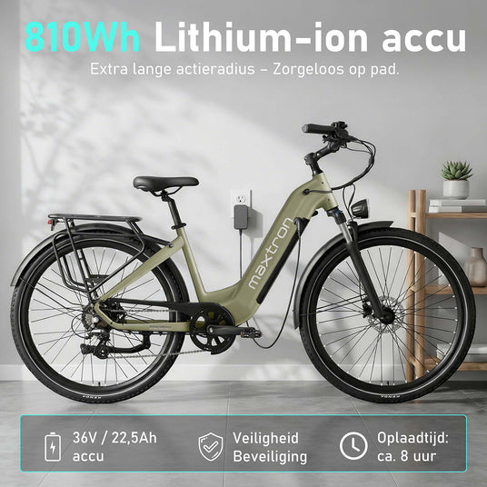 - 36V 22,5Ah (810 Wh) Accu – Extra lange actieradius tot 160 km